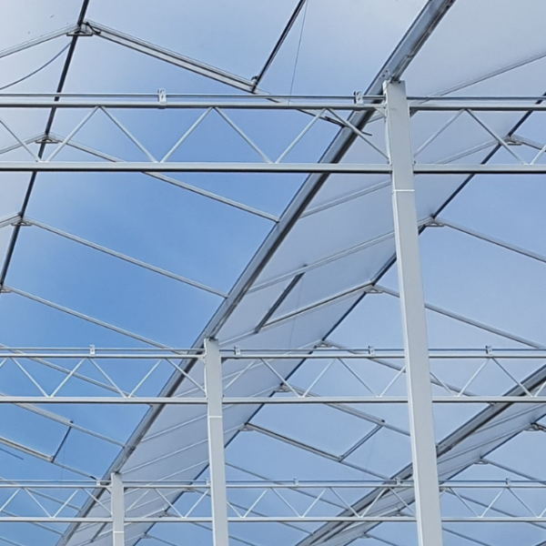 De speciaal gevormde goot beperkt lichtonderschepping tot een minimum. In combinatie met aangepaste roedes en dekhoogtes stem je het systeem volledig af op de teeltwensen van je klant. Elk Optinova™ systeem wordt berekend, geëngineerd en geproduceerd op maat – inclusief projectengineering via TNO’s ‘Glazenstad’.